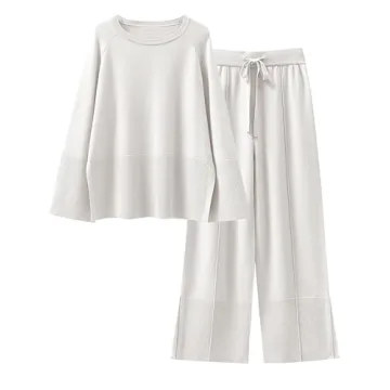 Show more Introducing the ultimate cozy companion for your wardrobe - this fabulous two-piece matching set that defines effortless style. Crafted with a soft knit fabrication, the set features a crew neck top with long sleeves and an oversized silhouette that gracefully drapes over your figure. The pullover style of the top pairs flawlessly with the chic wide-leg pants, which boast an elastic drawstring and a high-rise design.