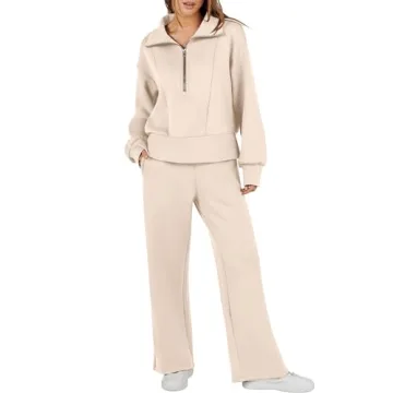 Show moreDiscover the ultimate blend of comfort and style with the ANRABESS Women's 2 Piece Sweatsuit Half Zip Sweatshirt and Sweatpant Set. This carefully curated outfit is designed for women who value both fashion and functionality in their casual wear. Made to be an essential part of your wardrobe, this two-piece set includes a chic ribbed knit sweater with a modern quarter-zip and a relaxed drop shoulder collar, paired perfectly with matching sweatpants for a coordinated look.