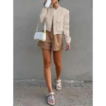 Features - Women's jackets, crew neck, long sleeve, cropped, pockets. This women's Bomber Jacket perfect for daily wear, work, office, travel, vacation.