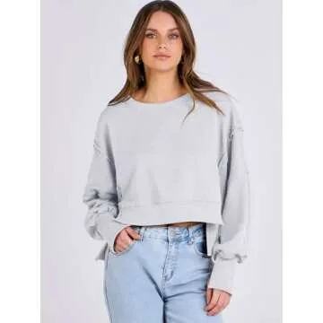 ANRABESS Womens Cropped Oversized Sweatshirts Crewneck Long Sleeve Pullover 2024 Fall Teen Girls Y2K Fashion Crop Tops Gray Medium