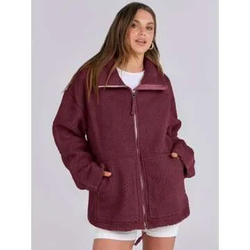 Features - Our women's fleece jacket is double zip, convenient pockets, oversized and long sleeve, warm. Featuring a warm and comfortable design, this sherpa jacket is perfect for chilly days and going out.