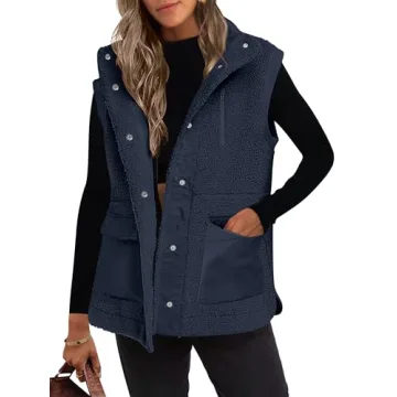 ANRABESS Womens Fuzzy Fleece Vest Sleeveless Casual Warm Button Down Sherpa Jackets Outerwear With Pockets Winter Fashion Navy Blue Medium