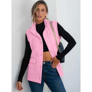 ANRABESS Womens Fuzzy Fleece Vest Sleeveless Casual Warm Button Down Sherpa Jackets Outerwear With Pockets Winter Fashion Pink Medium