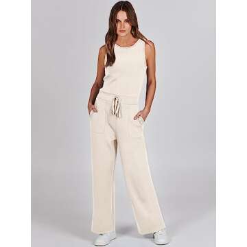 ANRABESS Womens Jumpsuits 2025 Casual Summer Dressy Romper Sleeveless Wide Leg Long Pants Outfits Fashion Travel Clothes Beige Large