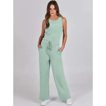 ANRABESS Womens Jumpsuits 2025 Casual Summer Dressy Romper Sleeveless Wide Leg Long Pants Outfits Fashion Travel Clothes Green Small