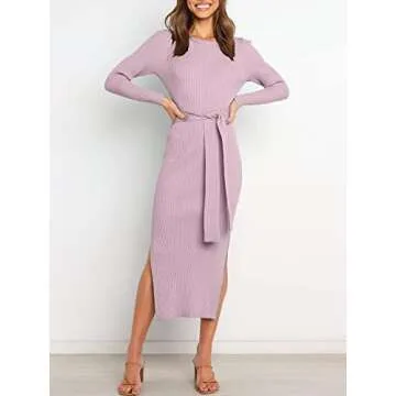 Show more Introducing the perfect blend of style and comfort, this adorable sweater dress is designed to elevate your wardrobe. With sizes ranging from S (US 4-6) to XL (US 16-18), it accommodates various body shapes, ensuring a great fit for everyone. This sweater dress features a round neck, long sleeves, and slit sides, making it an ideal choice for both casual days and special occasions. The tie waist adds a touch of elegance, defining your silhouette beautifully and providing versatility in styling options.