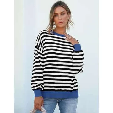Features - Women's sweaters, long sleeve, side slit, oversized, striped, loose. Perfect for daily, home, school, going out, holiday, vacation, office, work, streetwear, etc.