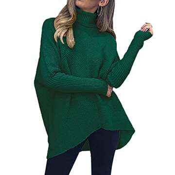 ANRABESS Womens Oversized Turtleneck Batwing Long Sleeve Casual Cozy Baggy Knit Pullover Tunic Sweater 2024 Fall Outfits Green X-Large