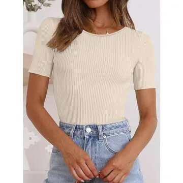 Features - Women's summer shirts, crew neck, short sleeve, knitted. This women's knitted tops perfect for daily wear, work, office, business.