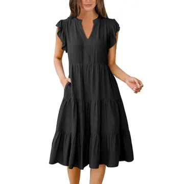 ANRABESS Women's Boho Summer Dress - Flowy Ruffle Sleeve V-Neck Midi