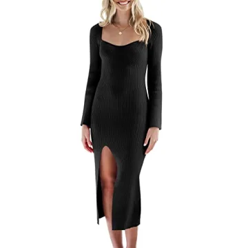 Show more Introducing the ANRABESS Womens Sweater Dress, the ultimate blend of comfort and style for the fall 2023 season. Made with a luxurious ribbed knit fabric, this elegant bodycon midi dress celebrates your curves while providing all-day comfort. The sweetheart neck showcases feminine allure, complementing the chic bell long sleeves that add a touch of sophistication. With a modern side slit, this dress not only enhances mobility but also introduces a flirty element to your ensemble. Perfect for a variety of occasions, it is designed to keep you warm while looking effortlessly stylish.