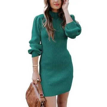 ANRABESS Womens Sweater Dress Long Sleeve Mock Neck Slim Bodycon Rib Knit Fall Short Mini Wedding Guest Party Dresses 2023 Trendy Outfit Maternity Outfit A145shuicaolv-L Green