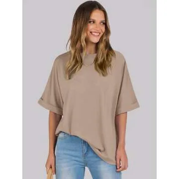 ANRABESS Womens Tops Oversized T Shirts Short Sleeve Crewneck Summer Casual Loose Basic Tee Shirt 2025 Trendy Fashion Clothes Khaki Medium