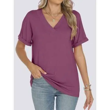 Features - Womens shirts, casual sytle, v-neck, rolled sleeve, loose fit.This womens summer tops perfect for daily wear, office, outdoor, street, party.
