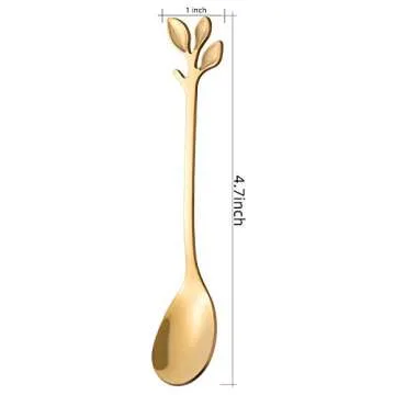 AnSaw 8-Pack Elegant Gold Leaf 4.7" Espresso Spoons - Stainless Steel, Perfect for Coffee, Demitasse, Dessert & Tea, Mini Size for Small Servings
