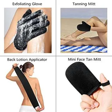 Each tool in the kit has been crafted with care, ensuring that you can apply lotions, mousses, and creams on your back, body, face, and even those tricky fingers with precision and ease. The exfoliating glove prepares your skin perfectly, allowing lotions to absorb quickly and evenly, while the back applicator’s two easy-to-grip handles ensure you can tan hard-to-reach areas without any assistance.