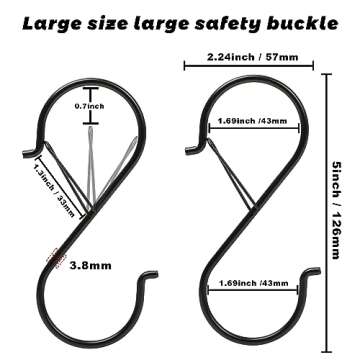 Ansxiy 6 Pack 5 Inch Heavy Duty S Hooks with Safety Buckle for Easy Hanging