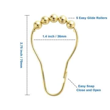 Ansxiy Shower Curtain Hooks Rings, Rustproof Metal Shower Curtain Rings for Bathroom Shower Rods Curtains - Set of 12, Golden
