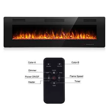 Antarctic Star 36 Inch Electric Fireplace in-Wall Recessed and Wall Mounted, Fireplace Heater and Linear Fireplace with Multicolor Flame, Timer, 750/1500W Control by Touch Panel & Remote