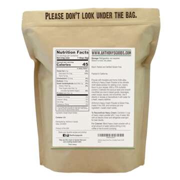 Show moreIntroducing Anthony's Heavy Cream Powder, a transformative culinary staple that boasts a remarkable 72% butterfat content. This premium heavy cream powder is perfect for both home cooks and professional bakers who seek quality and convenience in their kitchen. Made with just one ingredient – sweet cream solids – it stands as a beacon of simplicity, devoid of fillers and preservatives. Experience rich, creamy flavors without the hassle of traditional cream!