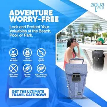 Introducing the FlexSafe by AquaVault, your ultimate solution for keeping your valuables secure during beach trips, pool days, or any outdoor adventures! Designed with portable convenience in mind, this anti-theft travel safe features a beautifully crafted exterior, made from five layers of slash-resistant material that ensures your belongings remain safe from pickpockets and thieves. With dimensions of 10" x 6" x 3" and weighing only 9...