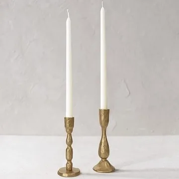 Antique Brass Iron Taper Candle Holders - Elegant Set of 2 for Weddings & Decor