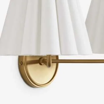 Antique Brass Wall Sconce, Double Living Room Wall Sconce with Fluted Linen Shade, Bedroom Wall Sconce, Indoor Light Fixture