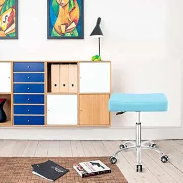 Introducing the Antlu Adjustable Rolling Heavy Duty Stool Chair, the ultimate seating solution that combines comfort, style, and functionality. This stool offers a stunning cyan finish, crafted specifically for professionals in environments like massage, tattoo studios, and medical offices. With its larger 21” x 13.2” rectangular seat, it provides optimal support, unlike smaller round stools that leave you shifting awkwardly.