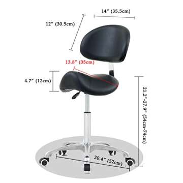 Antlu Saddle Stool Chair with Back Ergonomic Rolling Esthetician Seat for Salon Tattoo Shop Spa Home Dentist Clinic (with Backrest, Black)