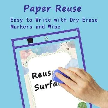 Antner 30 Pack Oversized Dry Erase Pockets Sleeves Reusable Ticket Holders, Clear Plastic Sheet Page Protectors, Heavy Duty Work Pockets School Teacher Classroom Office Organization Supplies, 10 Color