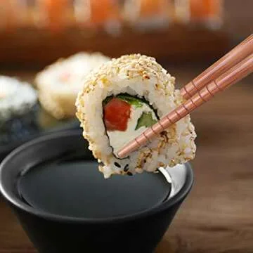Antner 5 Pairs Natural Bamboo Chopsticks Reusable Classic Japanese Style Chop Sticks Gift Sets, Dishwasher Safe, 8.8 Inch/22.5cm
