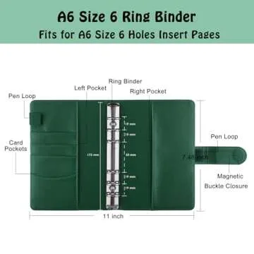 Show moreIntroducing the Antner A6 PU Leather Notebook Binder, the ultimate solution for anyone striving to keep their life organized while maintaining a touch of elegance. Crafted from premium PU leather, this binder cover embodies sophistication and practicality. Measuring at a compact size of 7.48 x 5.2 inches, it is designed to house A6 size pages, making it ideal for personal planners, journaling, or simply jotting down notes. With its rich dark green hue, this binder is not only a visual delight but also a reliable companion for your everyday tasks.