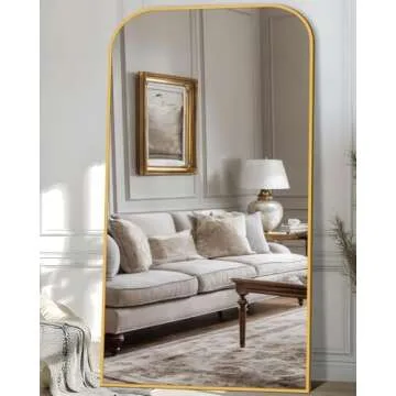 Antok Full Length Mirror, 81"x41" Floor Mirror Freestanding, Arched Floor Standing Large Mirror Full Body Mirror with Stand for Bedroom, Hanging Mounted Mirror for Living Room, Gold