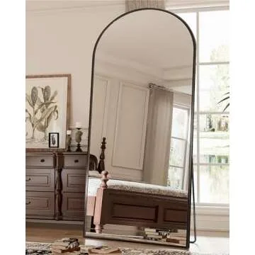 Show moreThe Antok Oversized Floor Standing Mirror is a luxurious addition to your home, measuring an impressive 71"x28". This large full-length mirror is designed not just for practicality, but it also serves as a stunning decorative piece that enhances any space. The arched top design, enveloped in a sleek aluminum alloy frame, promotes a feeling of elegance, making it a perfect fit for contemporary and classic interiors alike. Its lightweight construction allows for easy movement while still being sturdy enough to stand alone or tilt against a wall.