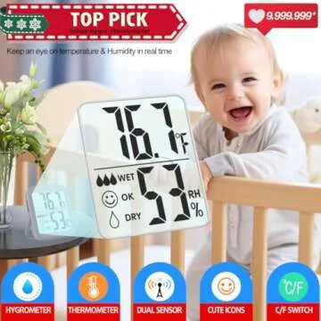 The Antonki 2 Pack Room Thermometer is the must-have solution for efficiently monitoring your indoor climate. This set includes two high-quality hygrometer thermometers designed to keep track of both temperature and humidity in real-time, helping you maintain optimal conditions in any room. With a temperature range of -58°F to 158°F (-50°C to 70°C) and a humidity range of 10% to 99%, these devices excel in providing precise readings across...