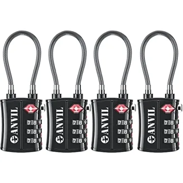 ANVIL TSA Approved Luggage Locks - Re-settable 3-Digit Combination Cable Lock with Alloy Body, Keyless & Stylish