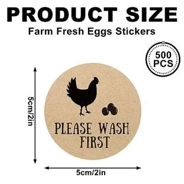 AnyDesign 500 Pcs Farm Fresh Eggs Stickers 2 Inch Round Farm Chicken Egg Labels Natural Brown Kraft Unwashed Egg Cartoon Label Decal for Business Farm Fresh Produce Egg Cartoon Labeling
