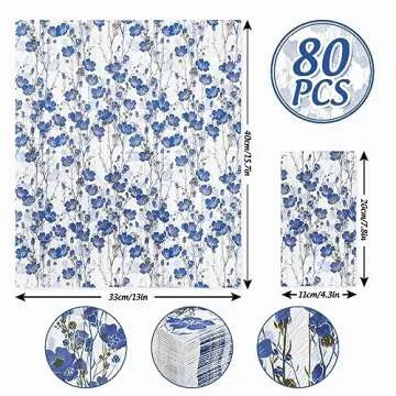 AnyDesign 80 Pack Blue Floral Guest Napkins Disposable Watercolor Blue White Flowers Paper Napkins Dinner Hand Napkin for Birthday Wedding Baby Shower Bridal Shower Party Supplies, 13 x 15.7 Inch