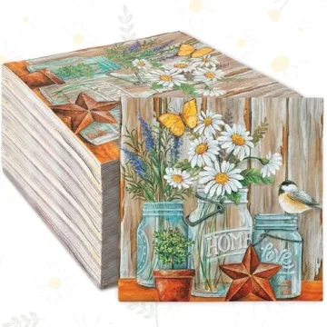Show more Introducing the AnyDesign 80Pcs Daisy Flower Paper Napkin, your perfect companion for every special occasion! Crafted with meticulous attention to detail, these napkins feature a stunning wood grain print adorned with vibrant flowers, elegant vases, and charming butterflies. Measuring 6.5 x 6.5 inches, they are large enough to suit all your dining needs—from casual luncheons to formal dinners—while adding a touch of rustic charm to your decor.