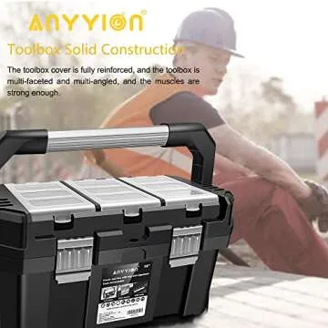 Show more The Anyyion Toolbox is crafted with precision and care, showcasing a robust solid construction designed to endure the toughest environments. Made from high-quality PP plastic, it has successfully passed extreme freezing tests, remaining resilient even at a chilling -22°F. This remarkable strength ensures that the toolbox is durable and sturdy, making it an excellent choice for carrying power tools, hand tools, and other medium-sized items.