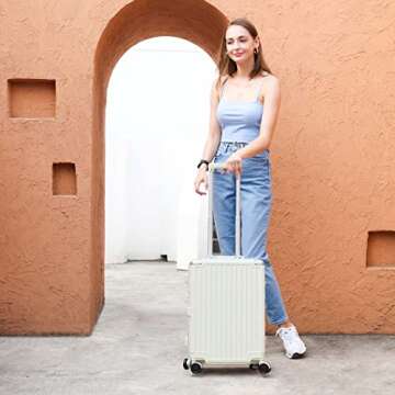 AnyZip Carry On Luggage - Aluminium Frame, PC ABS Hard Shell, Suitcases with Wheels, TSA Lock, No Zipper - 20in White
