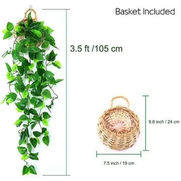 Show moreTransform your living space into a lush oasis with the ANZOME Artificial Hanging Plants. Measuring an impressive 3.5 feet, this ivy vine will cascade beautifully, creating stunning vertical interest in any room or outdoor area. Each piece is designed with meticulous craftsmanship, featuring leaves made from high-quality plastic coated with a realistic surface finish that closely mimics natural foliage. The sturdy stems combine plastic and iron wire, ensuring durability while the included hand-woven wooden basket enhances the overall aesthetic. Enjoy all the beauty of nature without the maintenance!