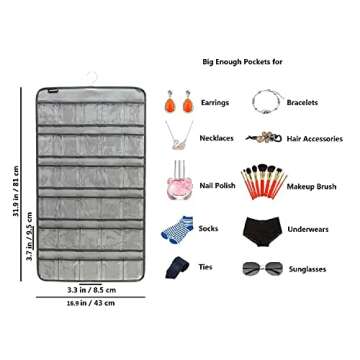 ANZORG Hanging Baby Shoes Organizer Baby Headband Holder Closet Organizer for Baby Bow Socks Underwear with 30 Clear Pockets (GREY)