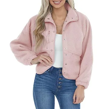 Aoang Women's Sherpa Fleece Jacket Faux Fuzzy Long Sleeve Casual Button Up Coat with Pockets Pink,L