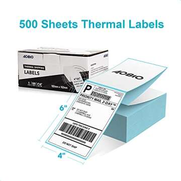 AOBIO 4X6 Direct Thermal Shipping Label Paper - 500Pcs - Commercial Grade Thermal Printer Labels - Compatible with Most Direct Thermal Printers (Fan-fold/500 Labels)