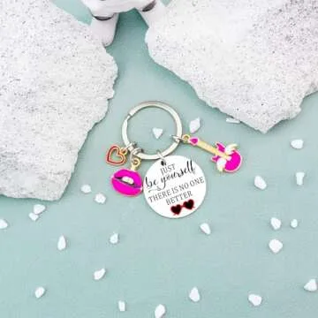 Show more Discover the perfect blend of inspiration and style with our beautifully crafted keychain, designed for those who cherish individuality. Whether you're a fan or looking for a thoughtful gift for a loved one, this keychain featuring the empowering quote: “Just be yourself, there is no one better” serves as a daily reminder to embrace your uniqueness.