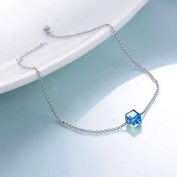 AOBOCO Aquamarine Anklets S925 Sterling Silver Blue Crystal Ankle Birthstone Ankle Mother Day Jewelry Gifts for Women