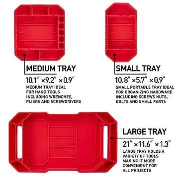 The trays come in three sizes: Small (11" x 5.7"), Medium (10.1" x 9.2"), Large (21" x 11.5").