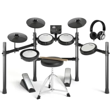 The drum set includes a drum throne, headphones, drumsticks, and all necessary cables, providing a complete package to get you started.