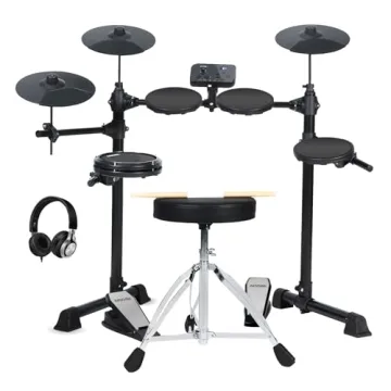 Show moreDiscover the AODSK Electric Drum Set, a versatile and complete solution for aspiring drummers of all ages. This comprehensive kit includes 4x 6.5-inch drum pads, 3x 8-inch cymbals, a drum module, drum throne, drumsticks, headphones, and all necessary cables. It features 10 play-along songs and 150 sounds, ensuring a realistic drumming experience. The sturdy metal frame ensures stability, while the portable and foldable design allows for easy storage and practice. Whether you are at home or performing outdoors, the AODSK Electric Drum Set is designed to meet your needs. It also includes AUX input and USB MIDI output for creating your own beats and music.